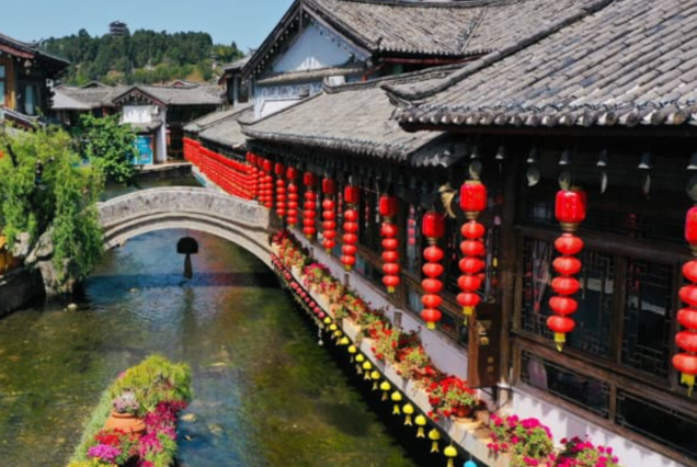 🏯 Dạo bước cổ trấn Lệ Giang – như lạc vào bức tranh thủy mặc sống động, với dòng sông trong xanh uốn lượn quanh phố cổ.